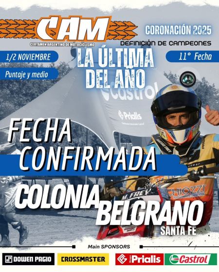 DEFINICIÓN ESTE FIN DE SEMANA DE LOS CAMPEONES DEL CAM EN COLONIA BELGRANO (SF) De la Redacción de INFORMOTO 31/10/2025
