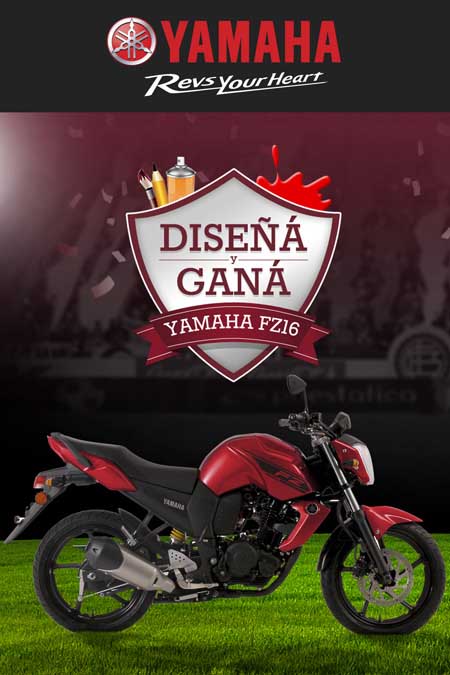 Buenos Aires, Enero de 2015 En el mes aniversario de Lanús, Yamaha Motor Argentina lanzó un concurso a través del cual los fanáticos del club pueden crear y ganar una Yamaha FZ16 granate. Ingresá en la web Promo FZ, utilizá los diseños granates disponibles y hacé la combinación más original para tu próxima Yamaha. Hay dos motos en juego y una puede ser tuya. Tenés tiempo hasta el 16 de marzo para participar (*)¬