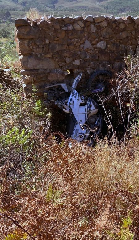 El piloto argentino (Pedregá racing) tuvo una caída en el kilómetro 180 , que le produjo un corte en uno de sus ojos. Además sufrió la rotura de la torre de navegación, y tuvo que sacar con la ayuda de colegas la moto que había quedado atascada. Esto lo comunicaba Jeremías en su cuenta de Instagram.