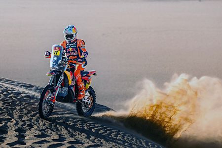 “No ha sido mi mejor día hoy. Había una nota complicada en el roadbook y yo era el primero. Cometí un error, y luego Daniel cometió el mismo error. No creo que nadie lo haya hecho bien. Cuando finalmente corregimos el error, ya había perdido unos nueve minutos. A partir de ese momento, se trataba simplemente de sobrevivir hasta la meta. Íbamos en un grupo de cuatro corredores, lo cual no era fácil, pero empezar más atrás debería ser bueno para mañana. La moto ...