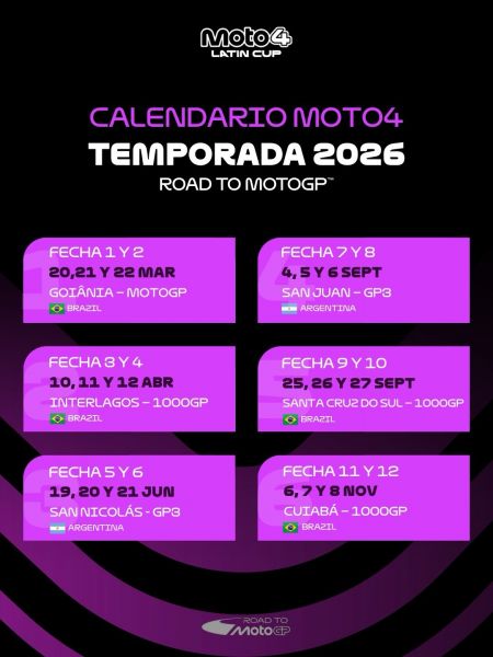 La temporada 2026 contará con 12 fechas que se correran en Brasil y Argentina. Las fechas serán en conjunto con los Campeonatos del Moto1000GP y el GP3 Argentina (ex CAV).