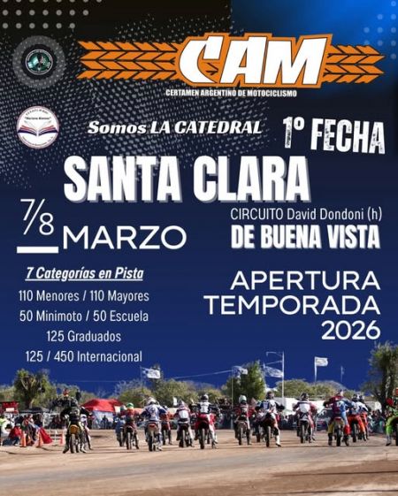 Con comienzo en Santa Clara de Buena Vista, Santa Fe; el 7 y 8 de marzo y finalización el 12 y 13 de septiembre en Cañada Rosquín, Santa Fe, el Campeonato 2026 del Certamen Argentino de Motociclismo en Ovalos de tierra contará con un total de 10 fechas.